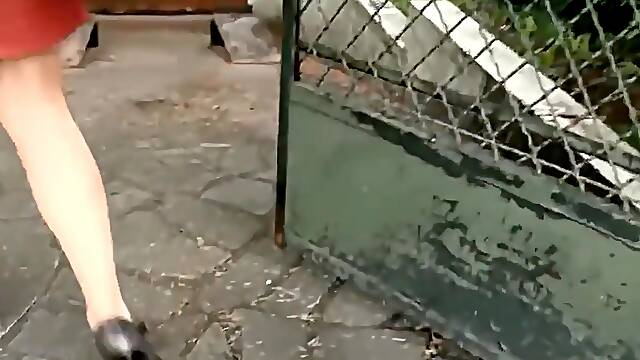 Mini-skirt clad granny with big tits enjoying a hardcore gangbang