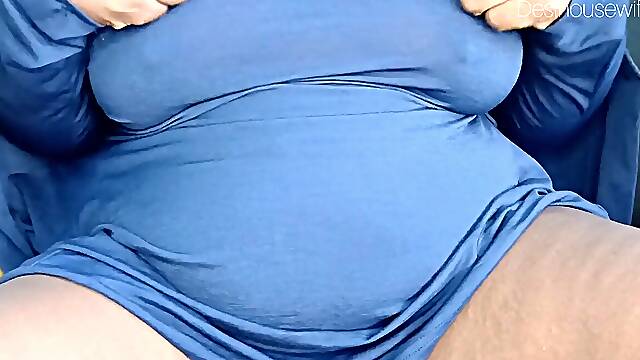 Aroused granny with huge boobs toy fucks her bush in a charming home solo