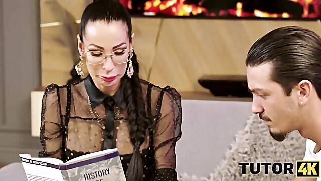 Mature rides in fabulous modes after gently choking with nephew's cock