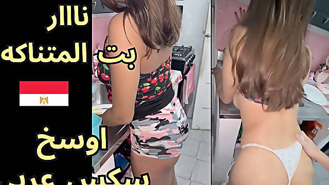 Egyptian Muslim Slut Cheats on Her Husband with His Friend in the Kitchen While He Was in the Living Room
