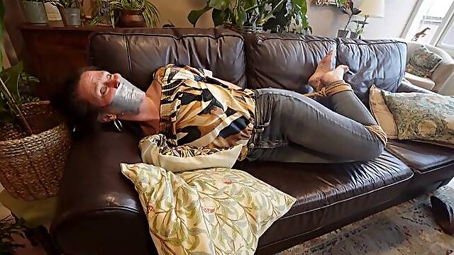 blonde mummy cherie deville tied gagged in a straitjacket and wheelchair smoke