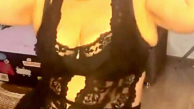 The sexiest and horniest mother Id like to fuck in the world flirts in a ebony bodysuit, takes off and shakes her titties for her fans / Angela-mother Id like to fuck