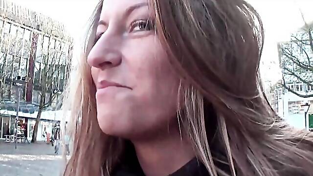 PublicAgent sneaky stroke in public over tall large breasts British brunette hair honey leads to creampie sex