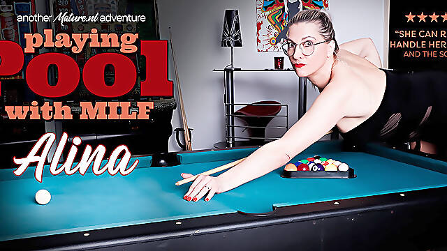 Alina is a German Tall MILF with a shaved pierced pussy that loves to play with a poolstick