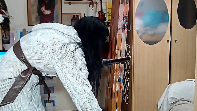 Very Horny Housewife Sticks a Vacuum Cleaner in Her Pussy