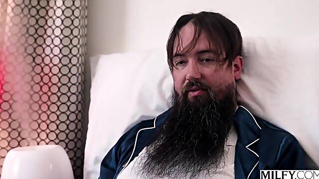 Redhead in her mid 40s granted stepson's penis hard in her hairy cunt