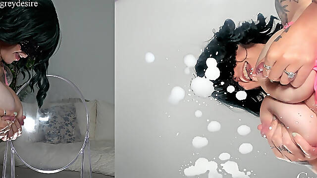 Dual Angle Big Tit Lactating MILF Makes Milk Mess - Grey Desire