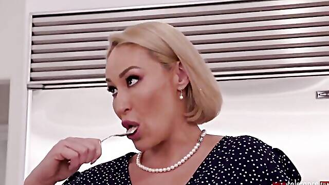 Mature short haired blonde babe Alana R. gets seduced by hard cock