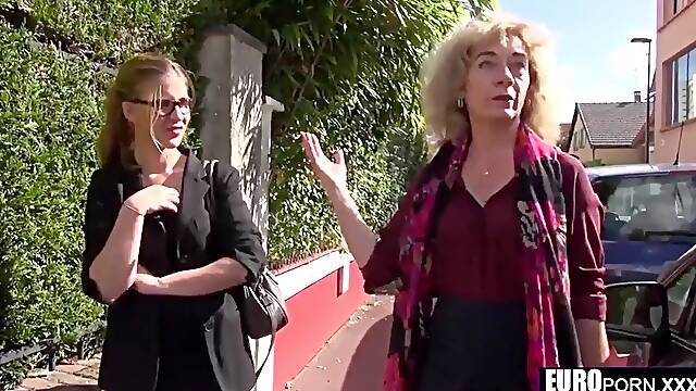 Slim brunette and MILF blonde swap sucking and fucking live at sexycamx.com